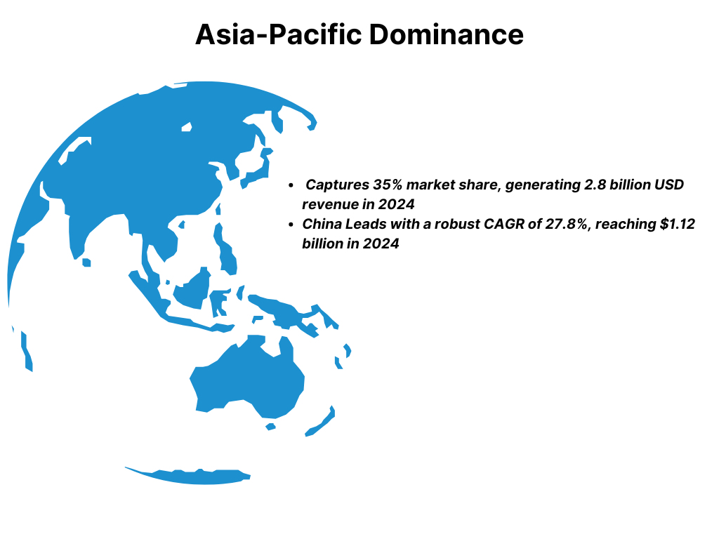 The Asia-Pacific region is expected to dominate the AI in Renewable Energy market, capturing over 35% of the market share and generating approximately 2.8 billion USD in revenue by 2024. Among the regional leaders, China stands out with a robust CAGR of 27.8%, expected to reach 1.12 billion USD in the same year. These projections reflect the region's commitment to technological innovation and renewable energy adoption.