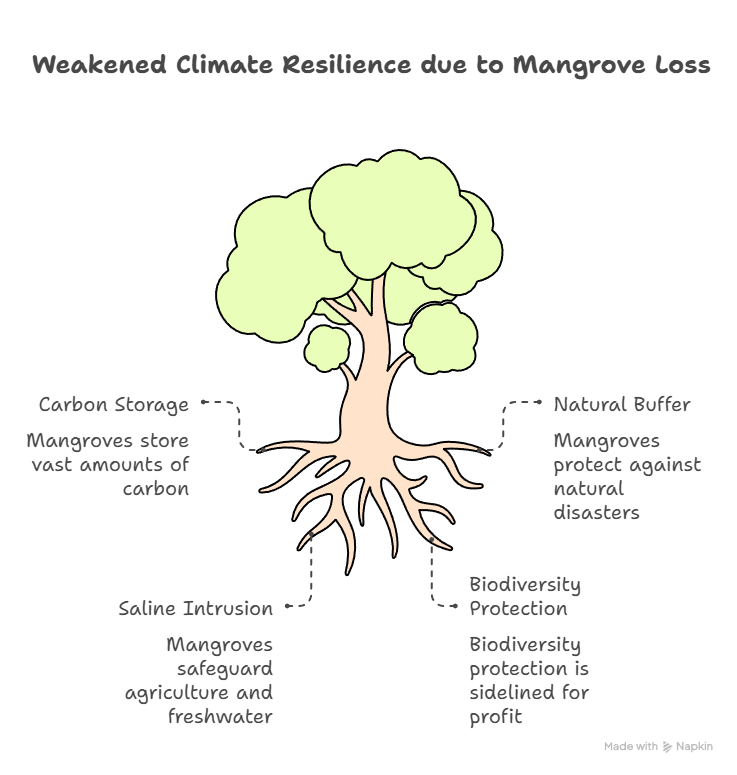 climate resilience of the entire region is weakened. Losing mangroves is