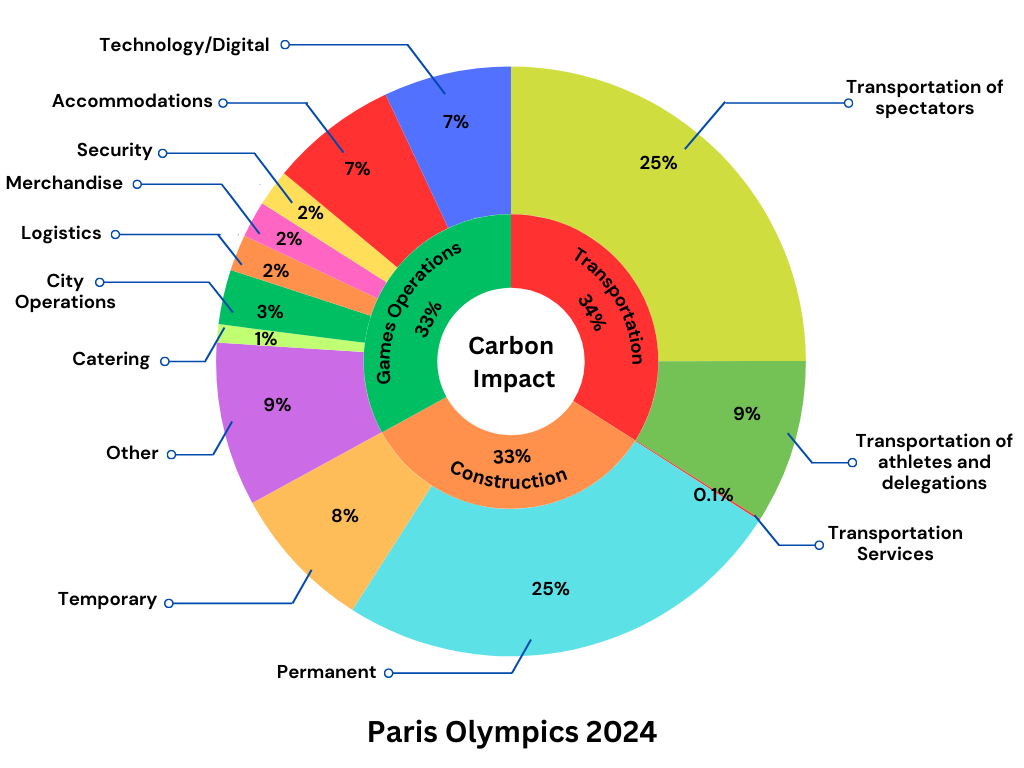 Travel and Accommodation Emissions: Approximately 50% of the Games emissions are from travel and accommodation, posing a major hurdle in reducing the overall carbon footprint.