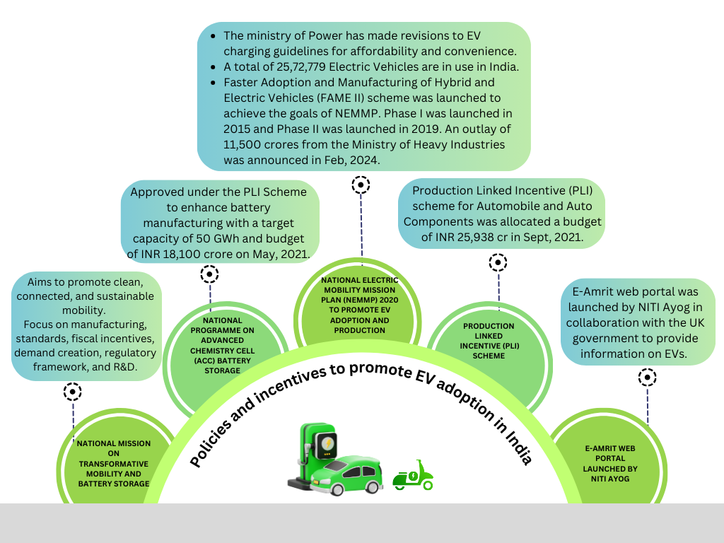 India has implemented policies like the Faster Adoption and Manufacturing of Hybrid and Electric Vehicles (FAME) scheme and Production Linked Incentive (PLI) scheme to support this transition, encouraging domestic manufacturing and adoption of EVs, particularly in the public and private transport sectors. States have also drafted specific EV policies, and advancements such as falling battery costs and a battery swapping policy are making EVs more viable.